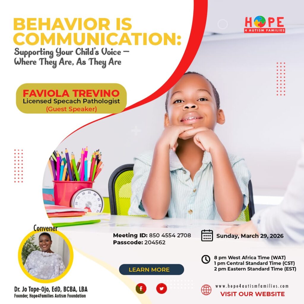Read More“Mummy, I Can Hear the Rain”: Adaobi’s Journey from Despair to Discovery.. By Dr. Josephine Tope-Ojo (BCBA-D, LBA)